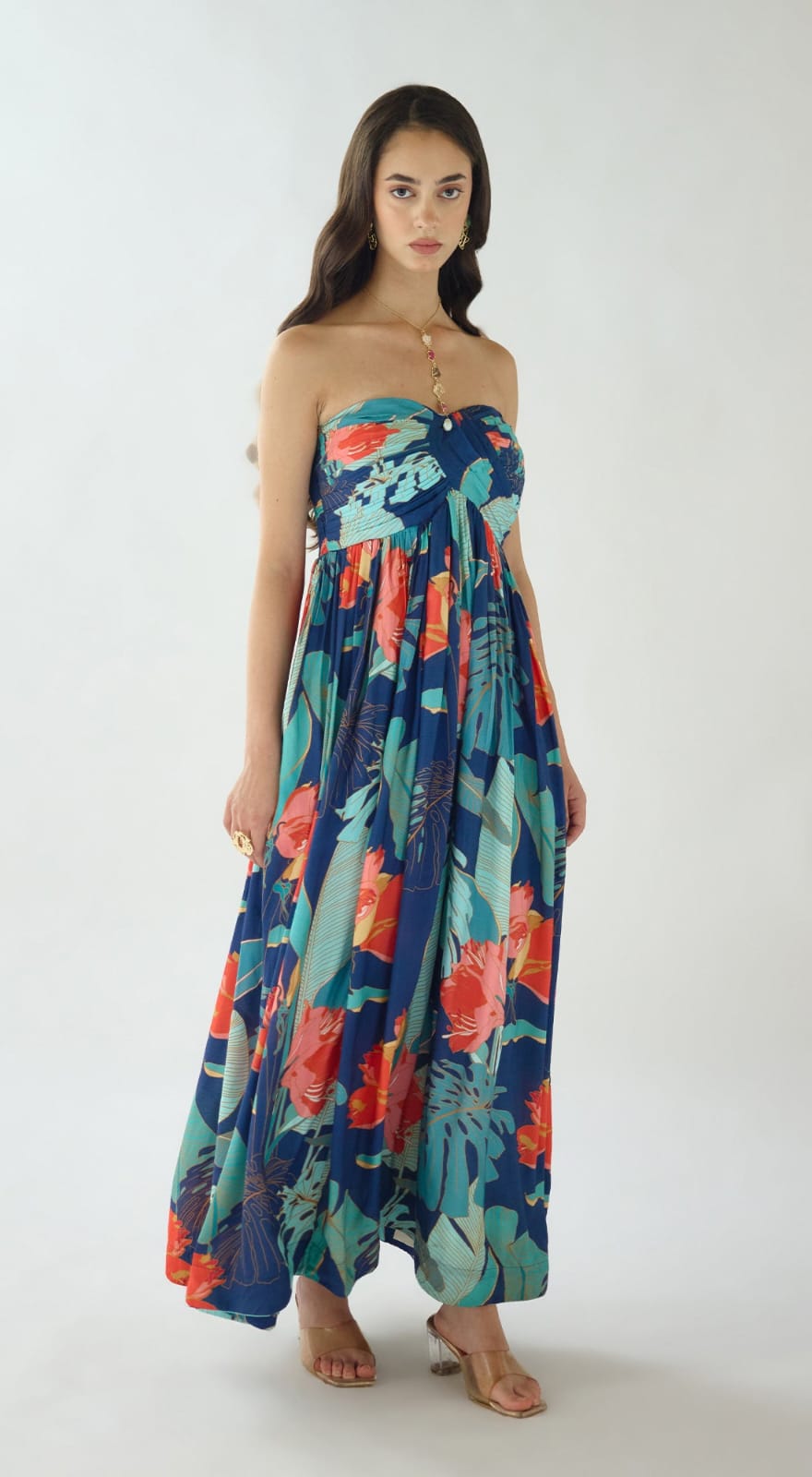 Blue Lagoon Bloom Resort Dress | Basanti Kapde Aur Koffee