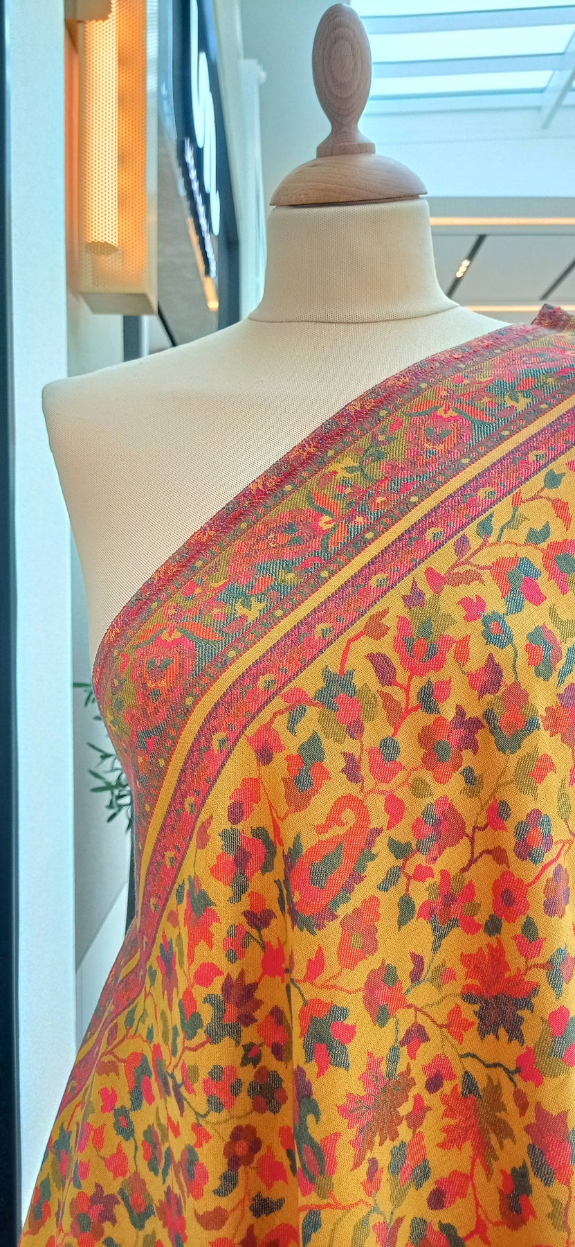 This cheerful cashmere shawl is a composition of colorful roses finely woven together. This shawl that can be worn during the day or night, with dresses in colors as varied as the roses themselves.