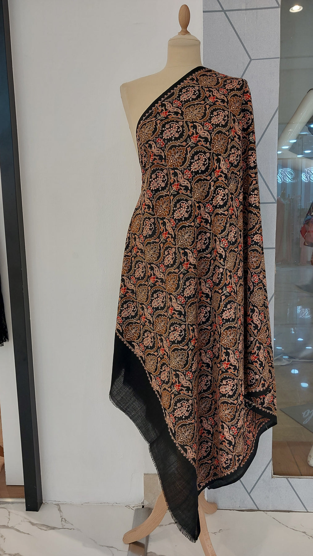 Our Siya Black shawl is Ideal for both casual and formal wear. Its palette of Brown, Red and Green are tinged with a pop of magic that adds mirth to this ensemble.