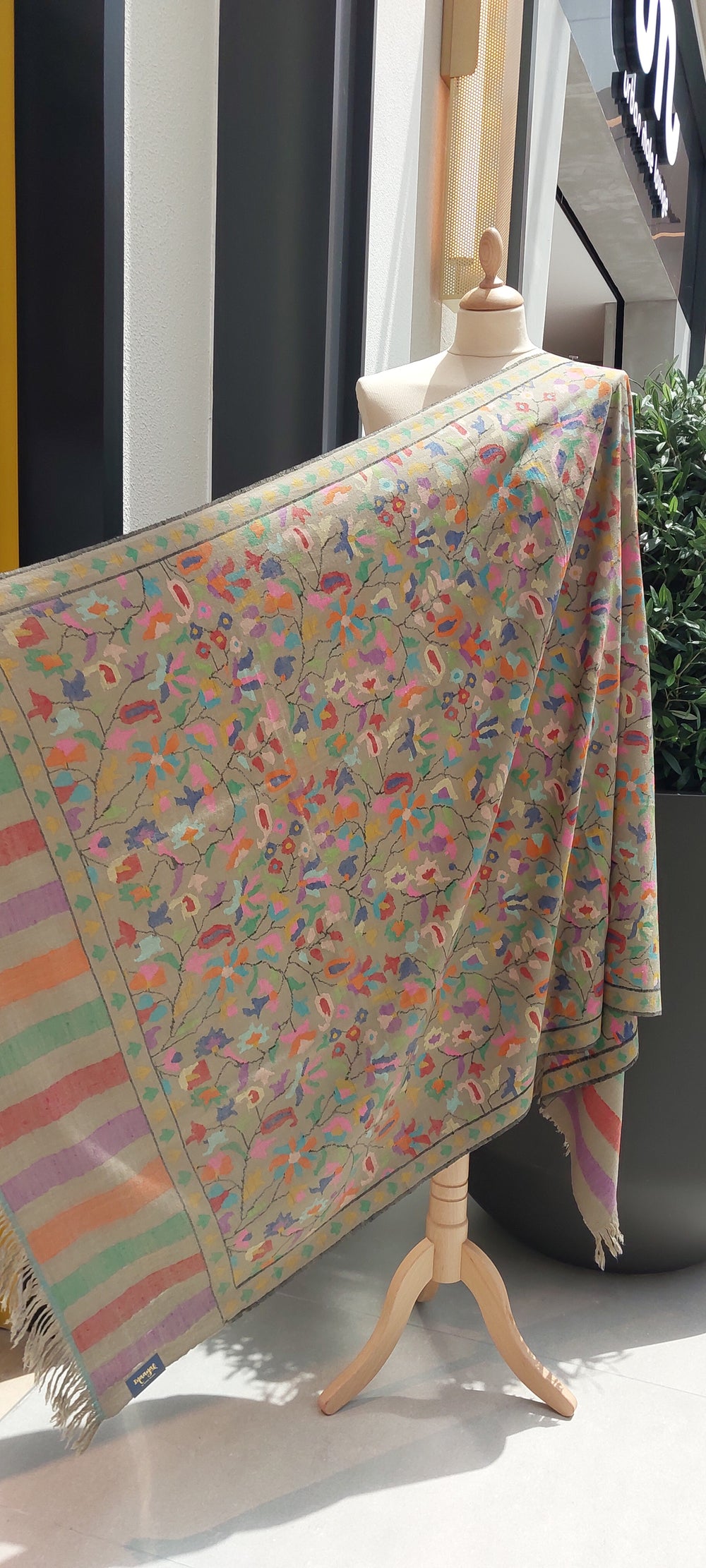 Emaan Light Grey Kashmiri Kani Pashmina Shawl |House Of Inaayat