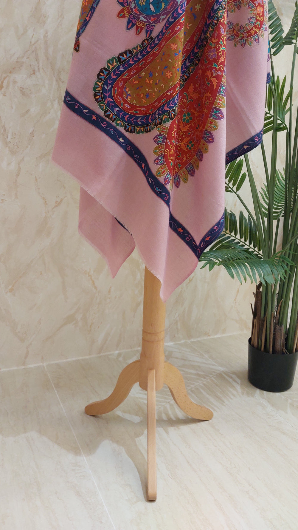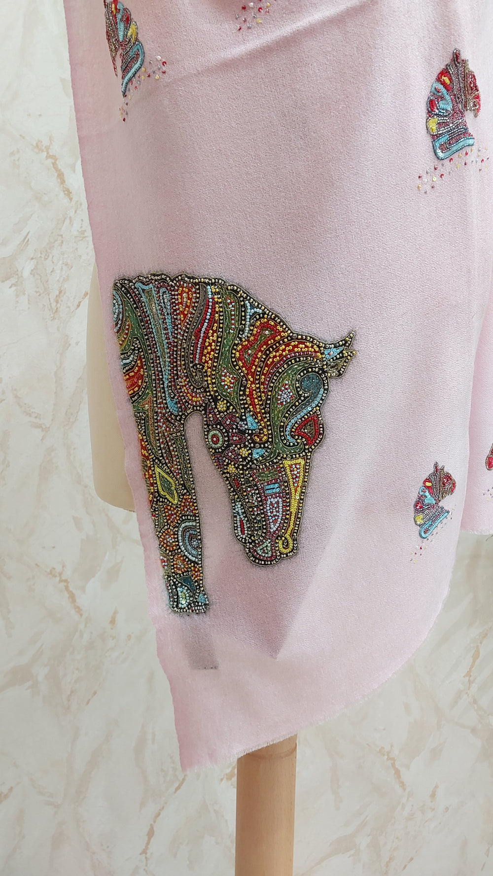 Pastel Pink Horse Motif Pashmina Scarf | House of Inaayat