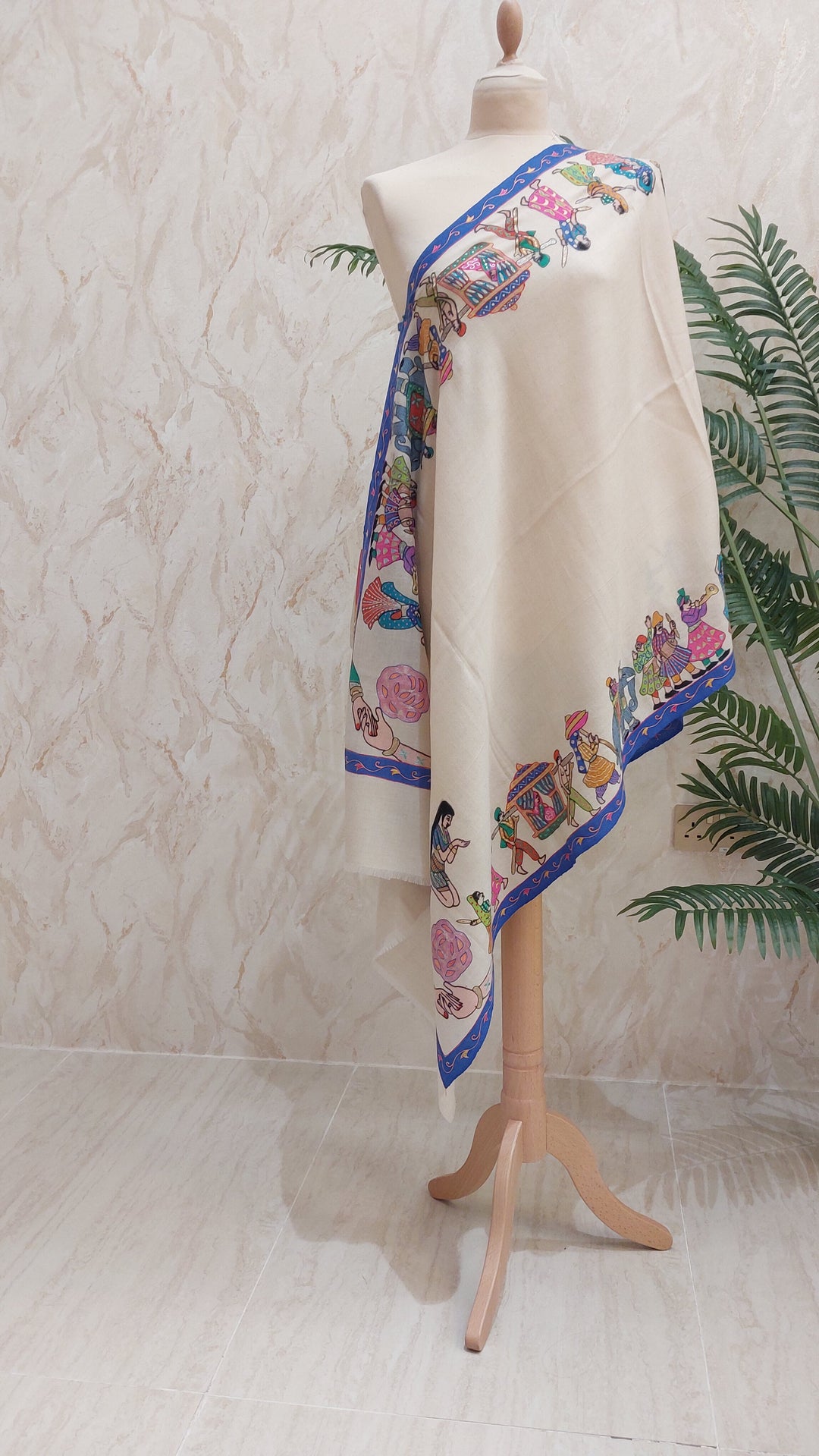Shipra White Kalamkari Pashmina Scarf | House of Inaayat