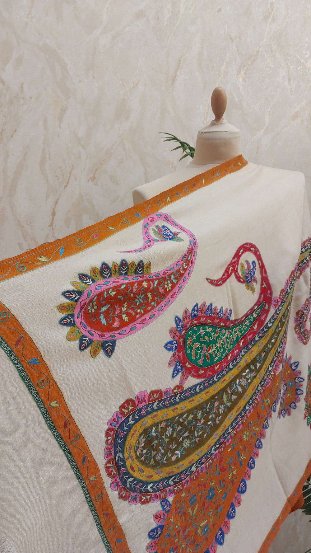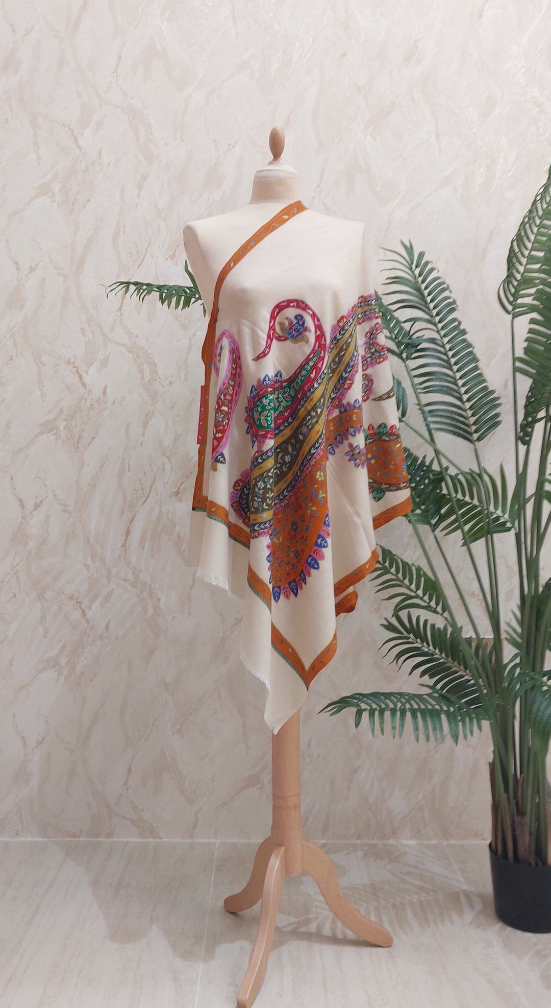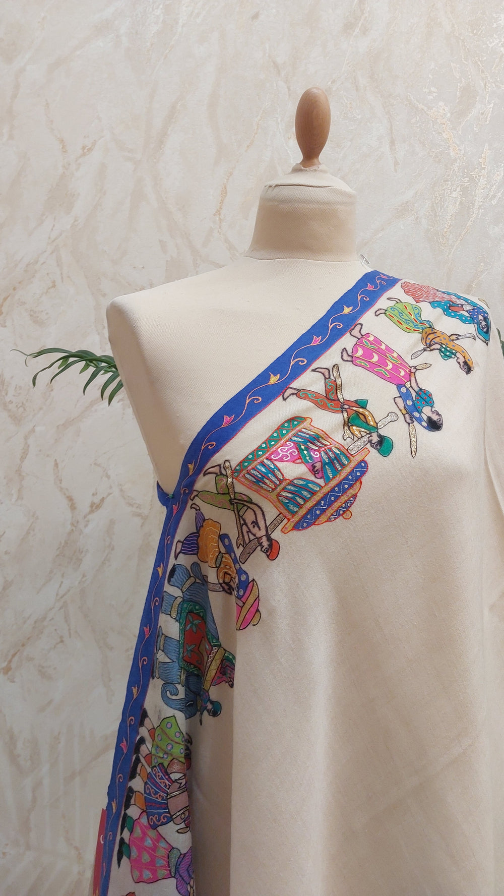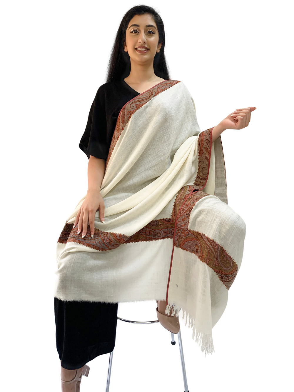 Shipra Ivory Pashmina Scarf with Heritage Palki Embroidery | House of Inaayat
