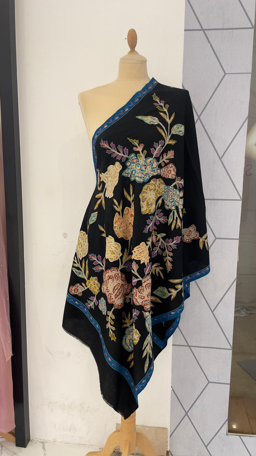 Black Gold Kashmiri Embroidered Shawl| House Of Inaayat