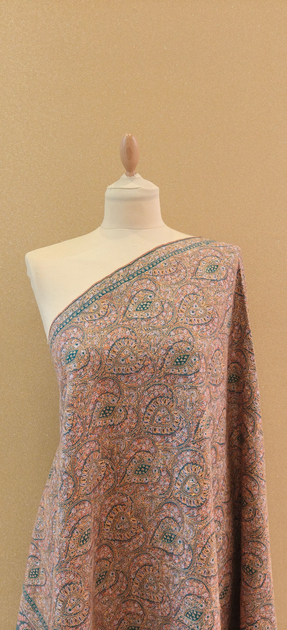 Elegant Paisley Embroidered Pashmina Shawl|House Of Inaayat