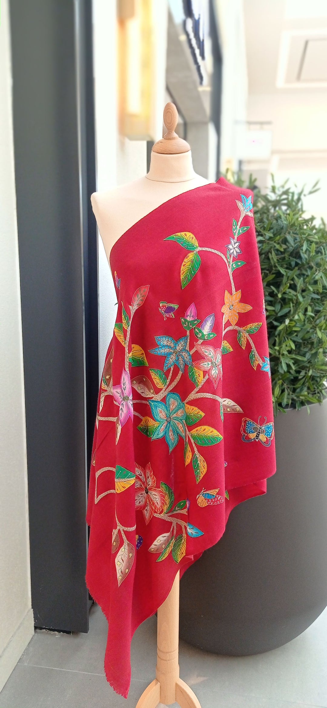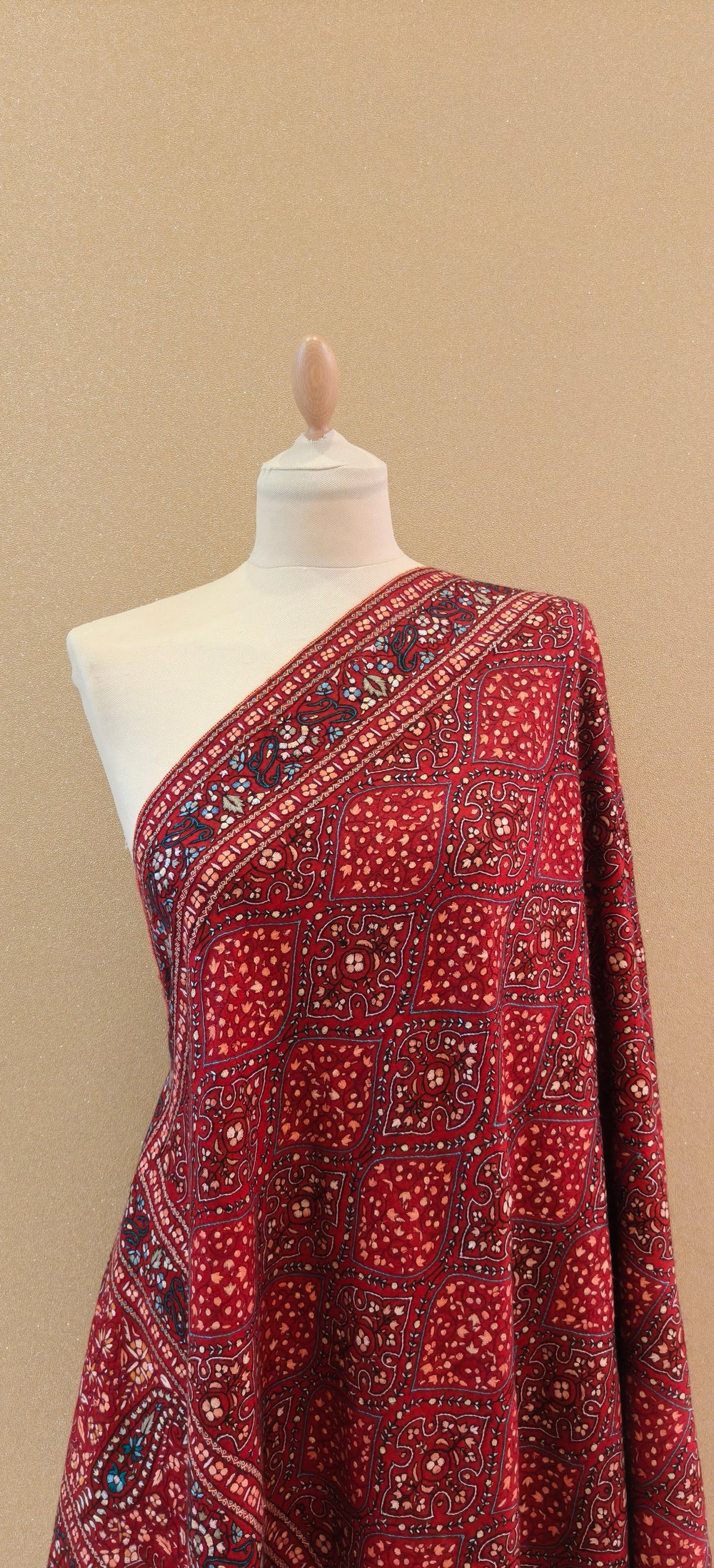 Emaan Red Vibrant Kashmiri Kani Pashmina Shawl |House Of Inaayat