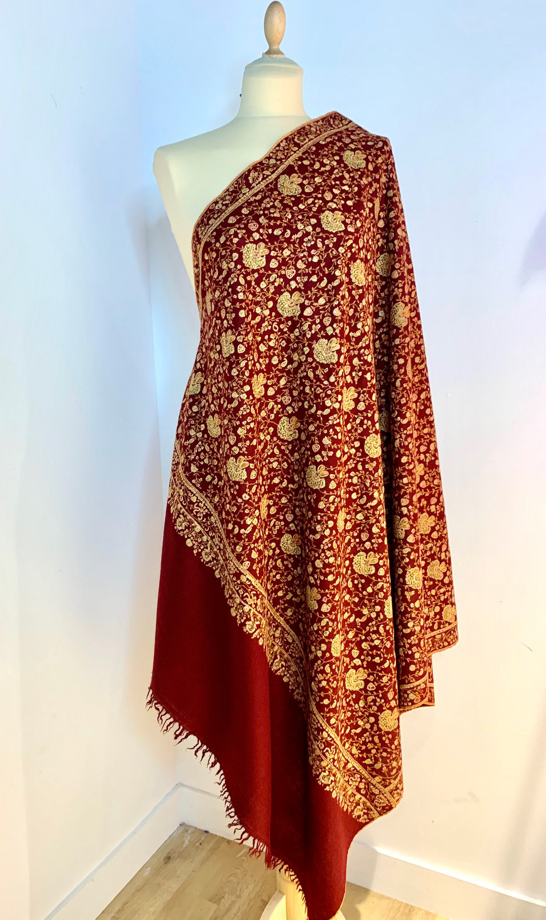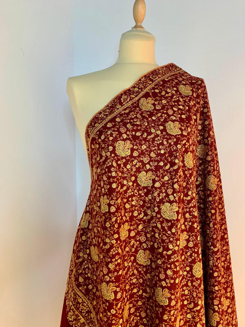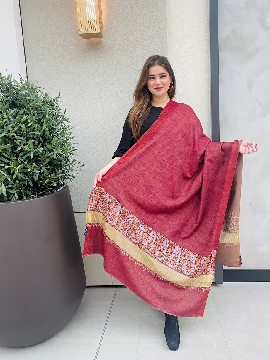 Taranum Maroon Pashmina Embroidered Shawl | House of Inaayat