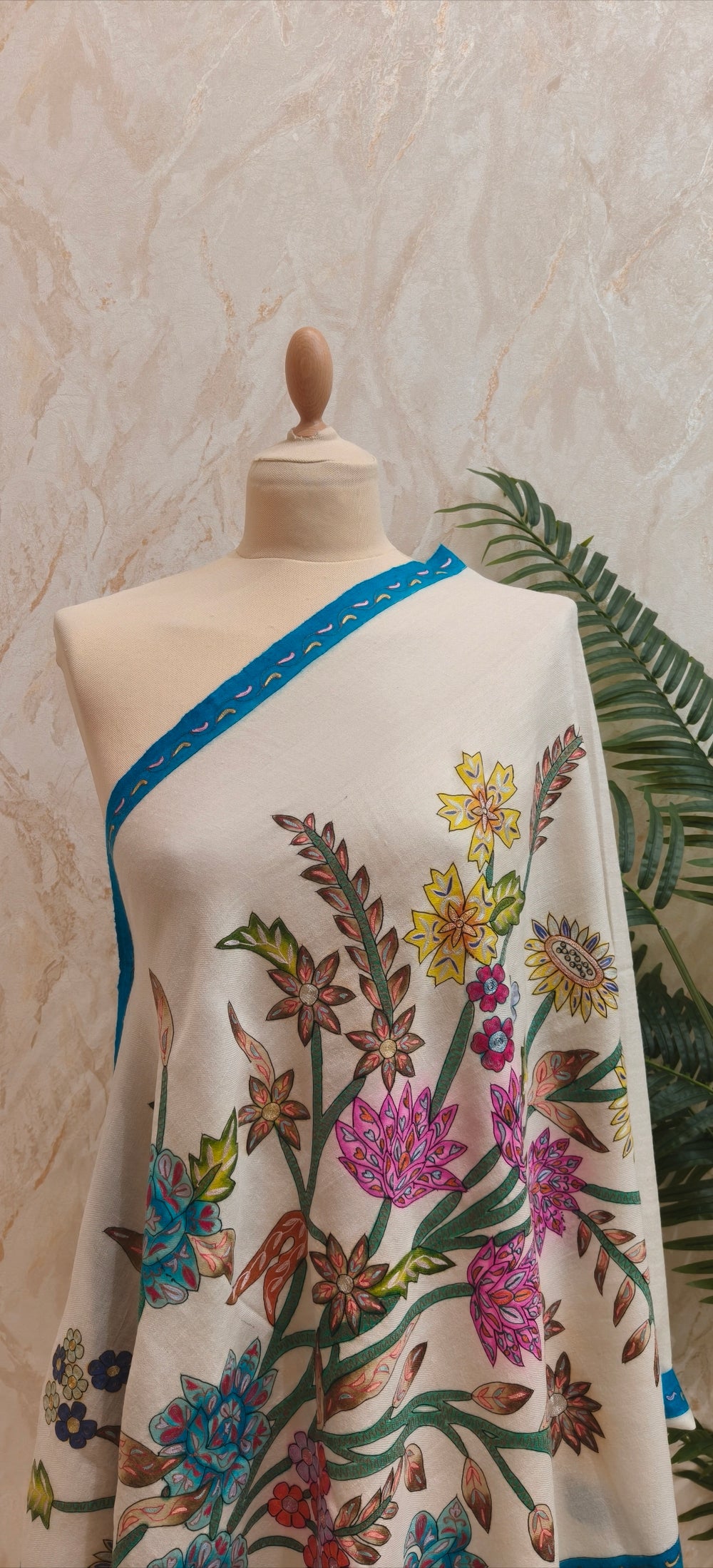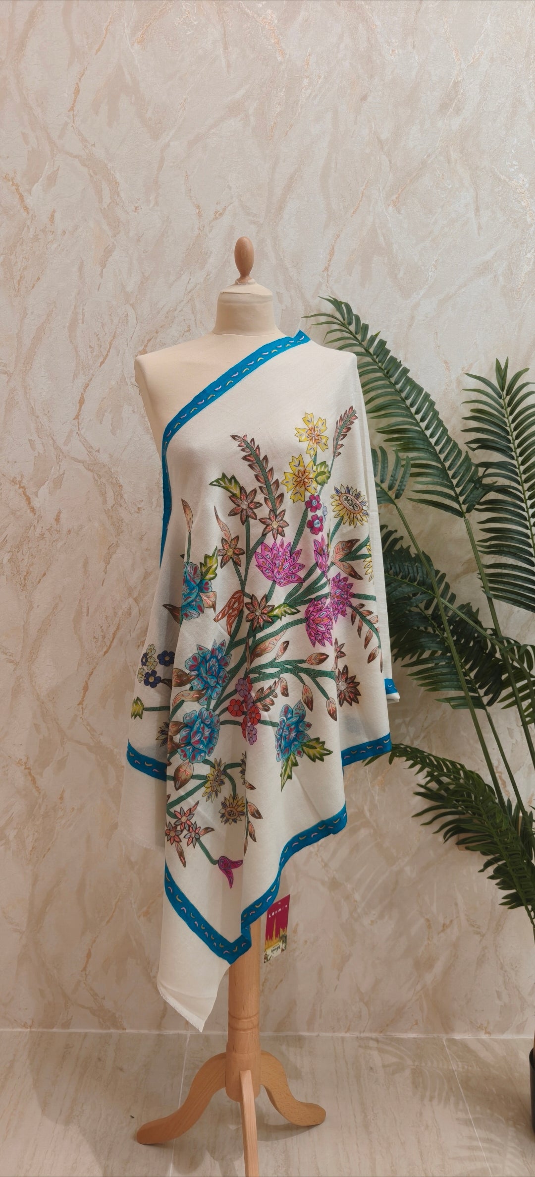 Shipra ice Blue Kalamkari Pashmina Scarf | House of Inaayat