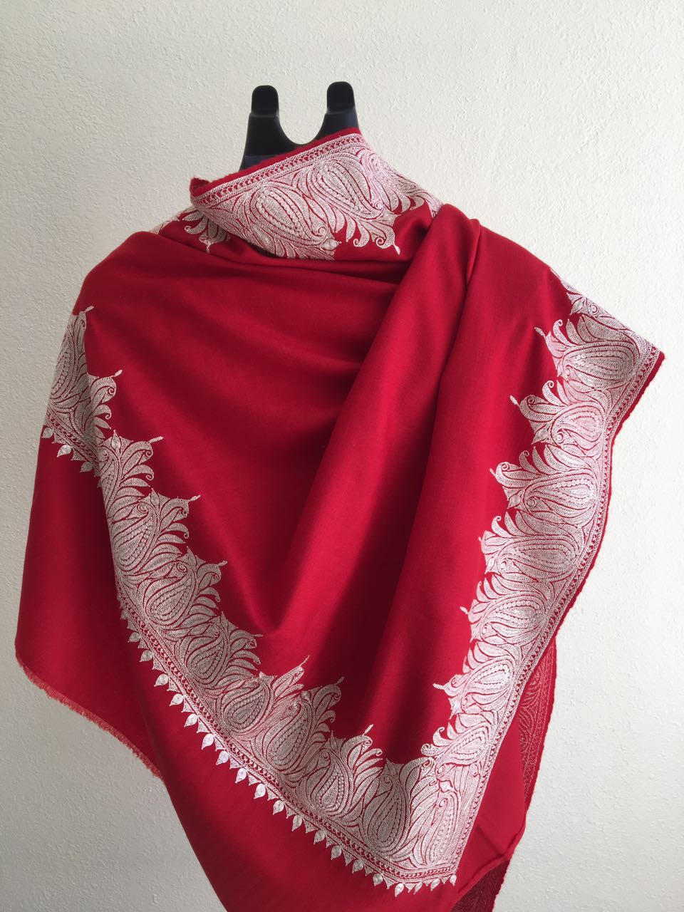 Aatish Red Pashmina Shawl With Tilla MetalPashmina shawls in Dubai| House of Inaayat