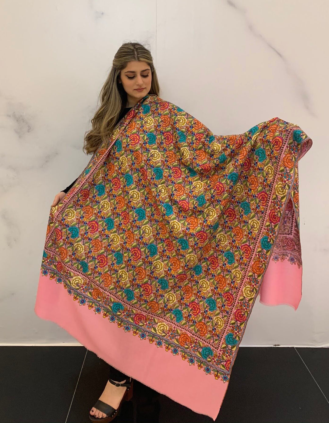 Gul Bahar Pink Pashmina Floral Jamewar Shawl | House of Inaayat